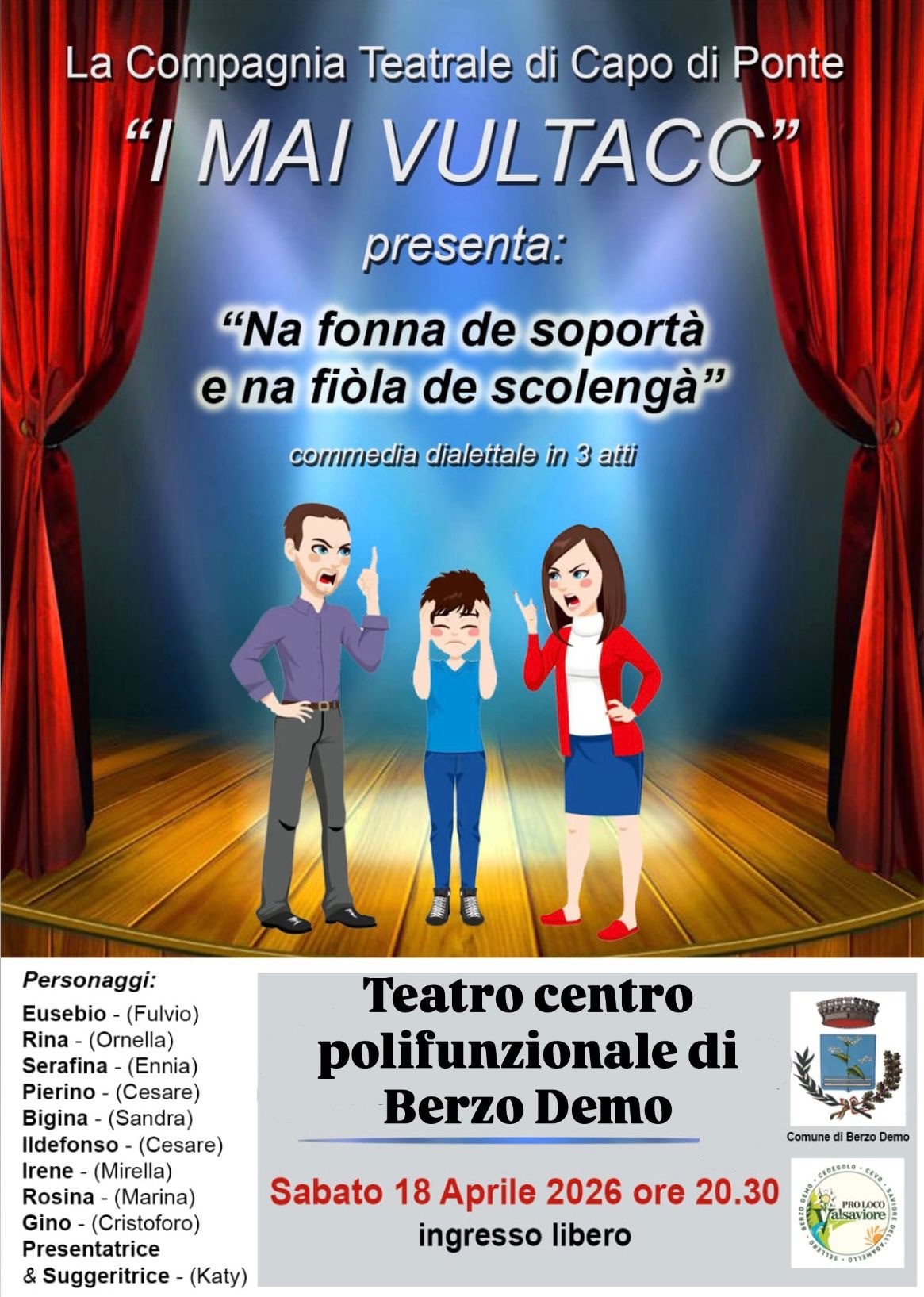 La compagnia teatrale "I mai vultacc" presenta una commedia dialettale in tre atti.